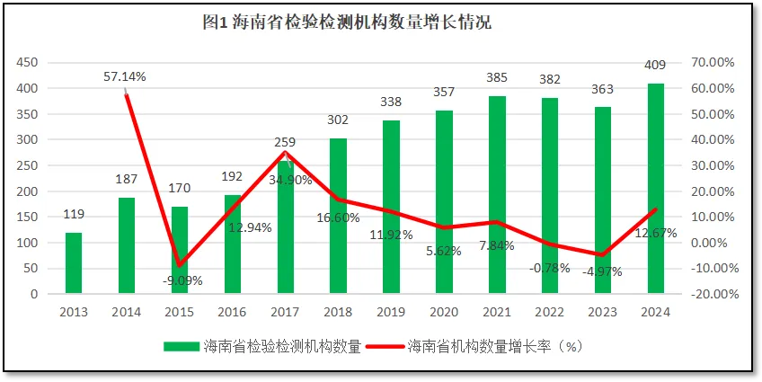 过去12年河南省检验检测机构数量的变化,如图1所示。