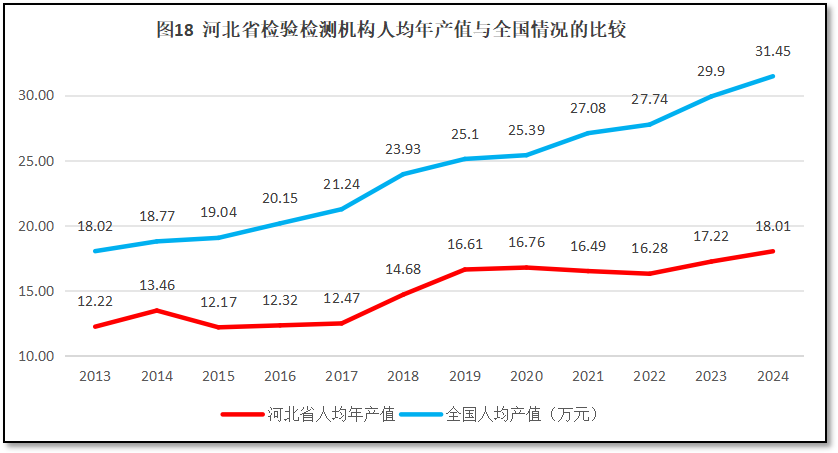河北省检验检测机构人均年产值与全国的情况比较,如图18所示。